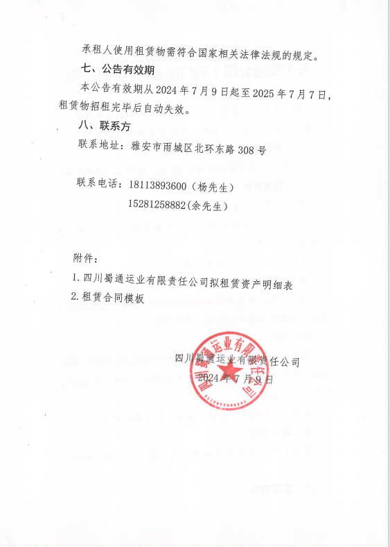 四川蜀通運業(yè)有限責(zé)任公司關(guān)于蜀通公司1間門面進(jìn)行掛網(wǎng)的公告附件