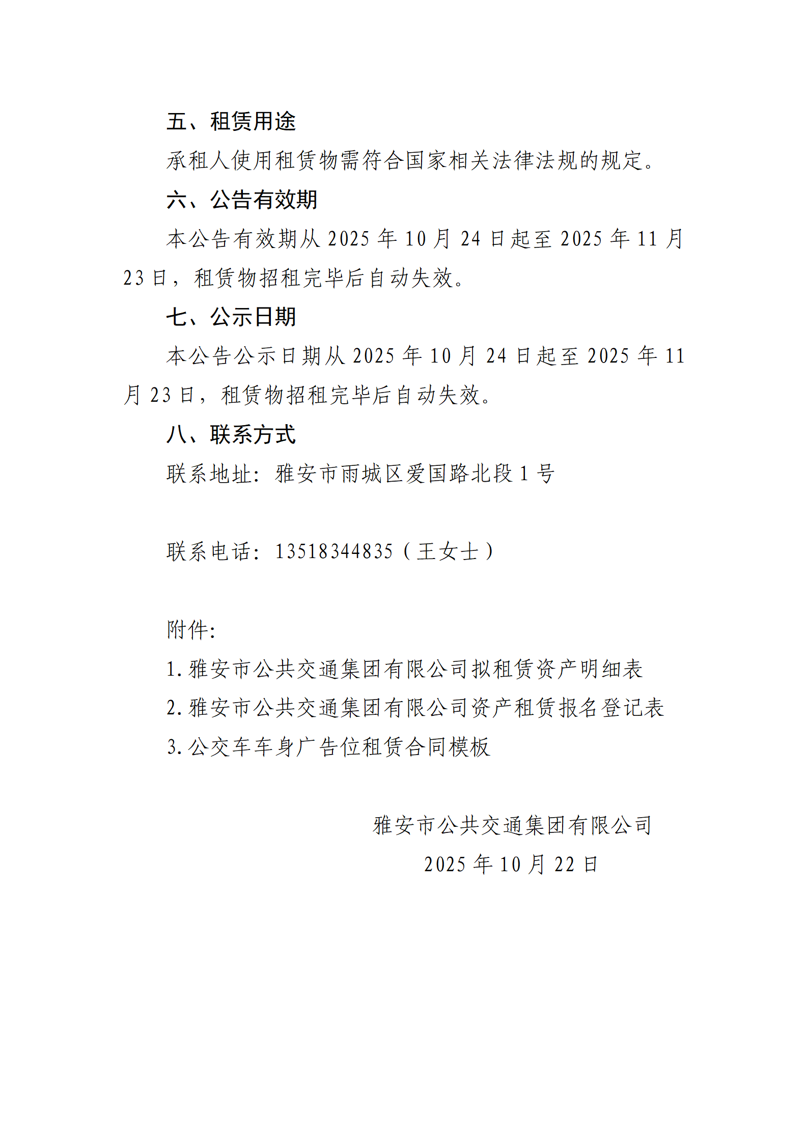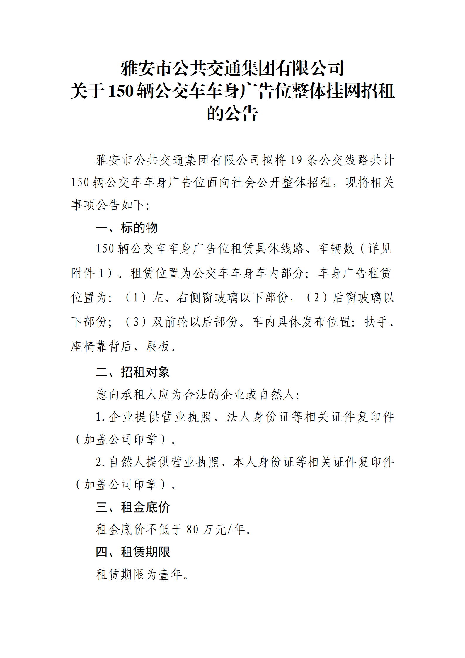 雅安市公共交通集團有限公司 關于150輛公交車車身廣告位整體掛網(wǎng)招租的公告