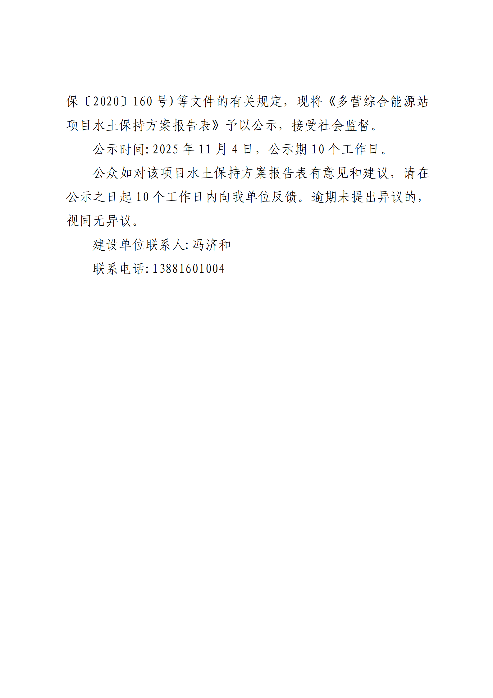 雅安交建集團(tuán)交通資源開發(fā)有限責(zé)任公司 關(guān)于《多營(yíng)綜合能源站項(xiàng)目水土保持報(bào)告表》的公示