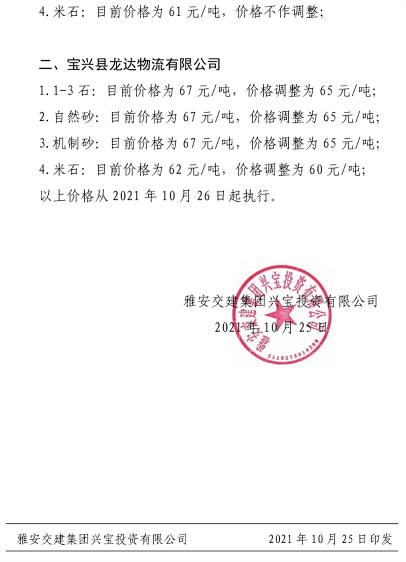 ÑŰ²½»½¨¼¯ˆF(tu¨¢n)µ¤Ê¯¹«Ë¾êP(gu¨¡n)ÓÚÕ{(di¨¤o)Õû³ÉÆ·¹ÇÁϼ°ïL(f¨¥ng)»¯µVʯÁÏäN(xi¨¡o)ÊÛƒr(ji¨¤)¸ñµÄ֪ͨ£¨2021.10.26£©