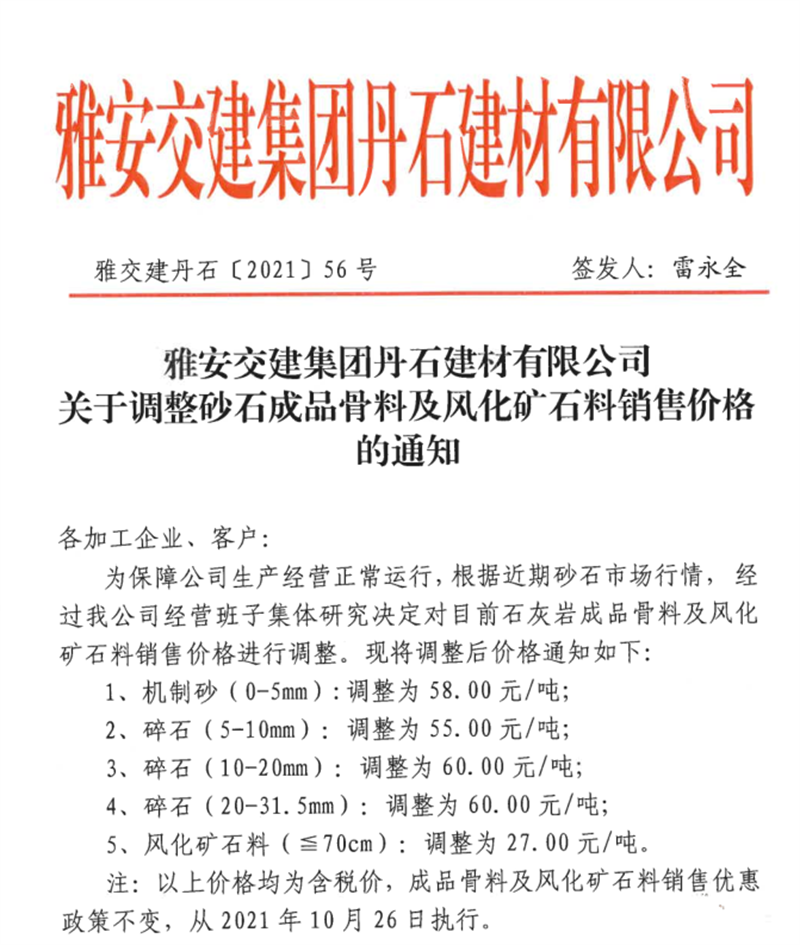 ÑŰ²½»½¨¼¯ˆF(tu¨¢n)µ¤Ê¯¹«Ë¾êP(gu¨¡n)ÓÚÕ{(di¨¤o)Õû³ÉÆ·¹ÇÁϼ°ïL(f¨¥ng)»¯µVʯÁÏäNÊÛƒr¸ñµÄ֪ͨ£¨2021.10.26£©