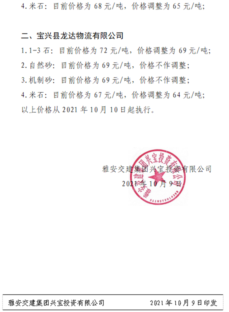 ÑŰ²½»½¨¼¯ˆFÅdŒš¹«Ë¾êP(gu¨¡n)ÓÚÕ{(di¨¤o)Õûɰʯ³ÉÆ·ÁÏäNÊÛƒr¸ñµÄ֪ͨ£¨2021.9.28£©