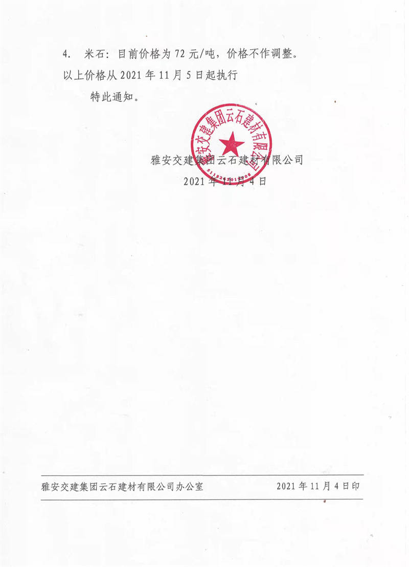ÑŰ²½»½¨¼¯ˆF(tu¨¢n)ÔÆÊ¯¹«Ë¾êP(gu¨¡n)ÓÚÕ{(di¨¤o)Õû³ÉÆ·ÁÏäNÊÛƒr¸ñµÄ֪ͨ£¨2021.11.4£©