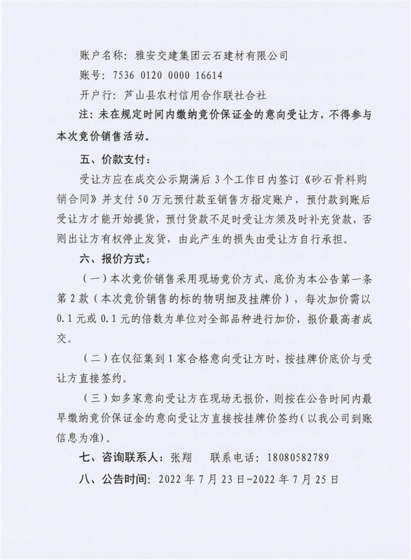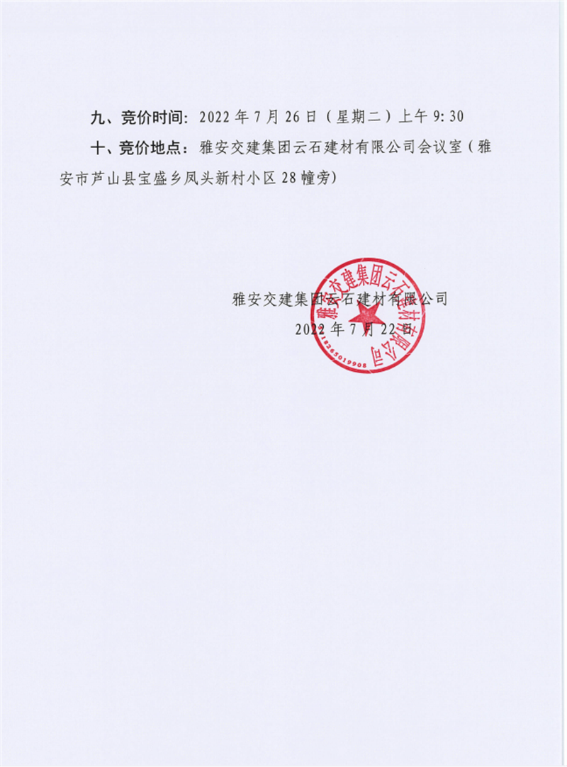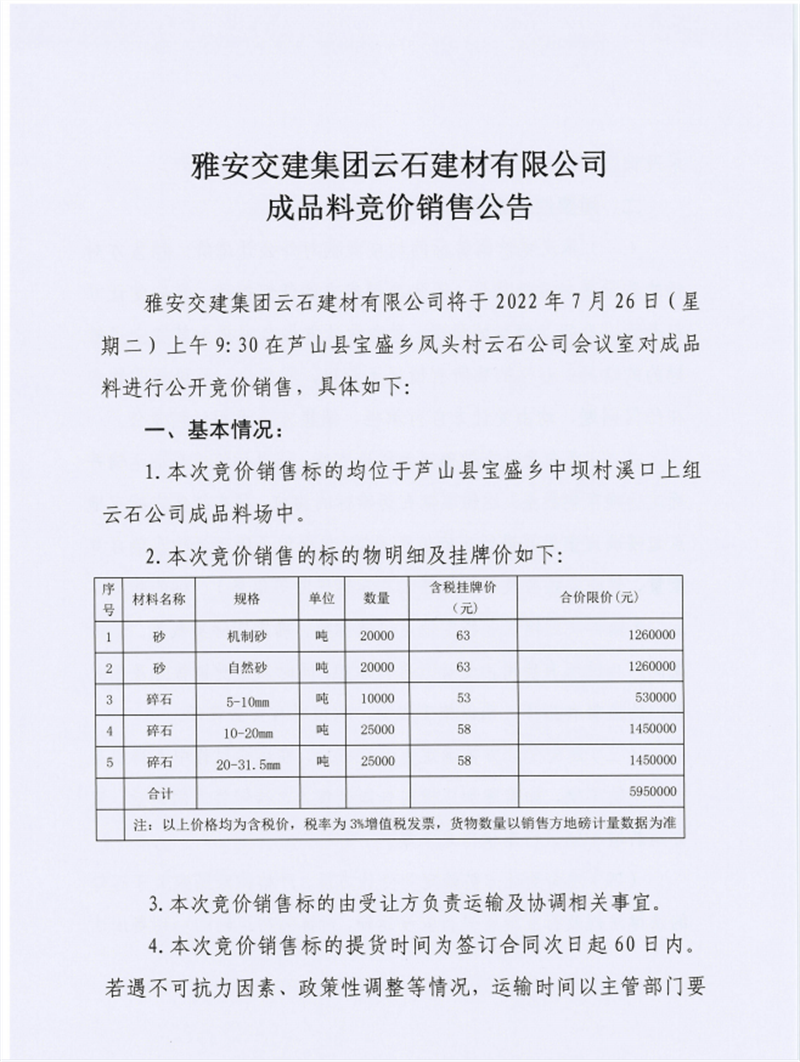 雅安交建集團(tuán)云石建材有限公司成品料競(jìng)價(jià)銷售公告
