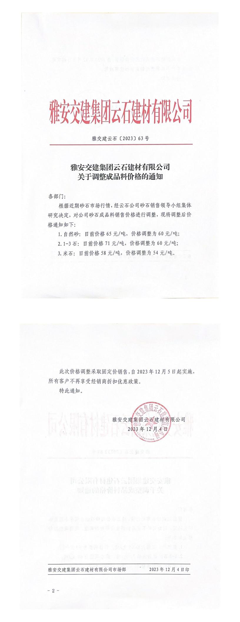 ÑŰ²½»½¨¼¯ˆF(tu¨¢n)ÔÆÊ¯½¨²ÄÓÐÏÞ¹«Ë¾³ÉÆ·ÁÏäNÊÛƒr¸ñÕ{(di¨¤o)Õû¹«¸æ£¨2023-12-04£©