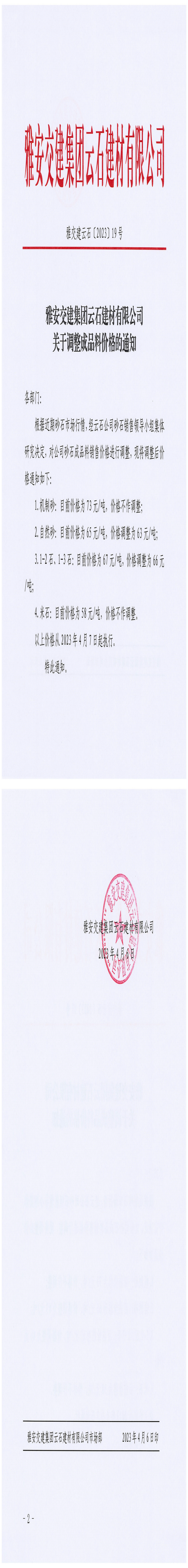 ÑŰ²½»½¨¼¯ˆFÔÆÊ¯½¨²ÄÓÐÏÞ¹«Ë¾êP(gu¨¡n)ÓÚÕ{(di¨¤o)Õû³ÉÆ·Áσr¸ñµÄ֪ͨ£¨2023-4-6£©